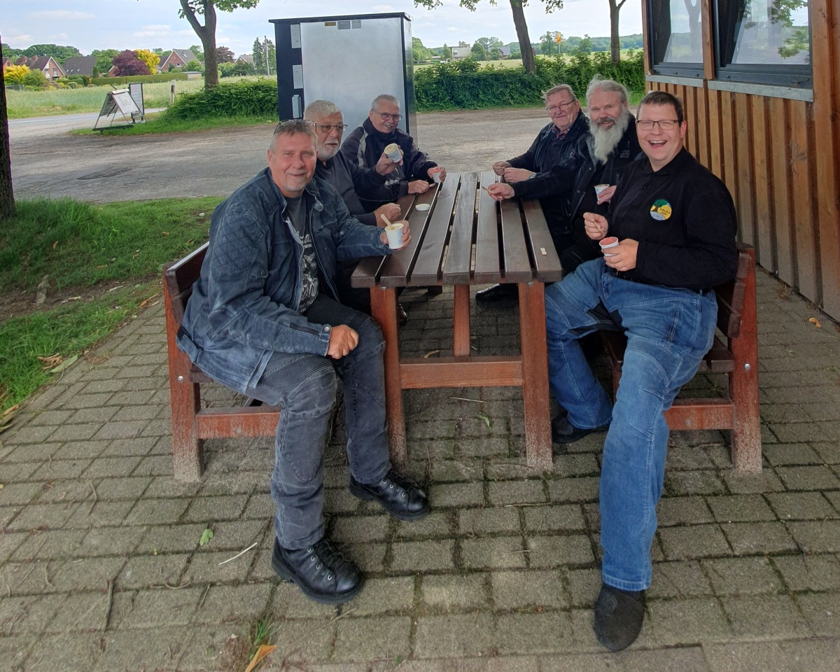 Dort angekommen wurden erst mal Moppeds geguckt. Bernd und Heidejürgen haben sich direkt wieder was zu essen bestellt, was den Rest der Teilnehmer einen kleinen Respekt abverlangte. Wir waren immer noch satt und beließen es bei Kaffee, Cola und verzogen uns auf den Deich, um das Jungvolk zu beobachten welches in Scharen einfiel…