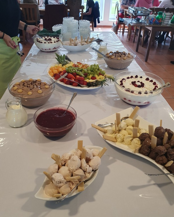 Ein reichhaltiges Frühstücksbuffet erwartete 8 hungrige Rollerfreunde und anschließend wurde noch ein Dessertbuffet aufgebaut mit allerlei Leckereien.