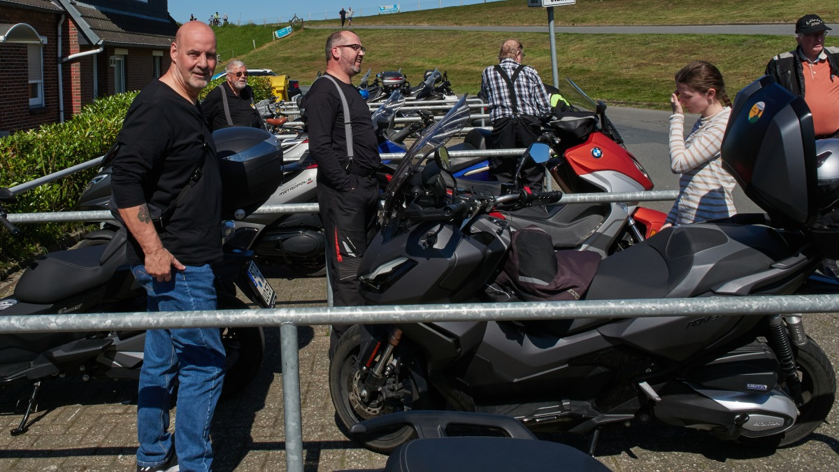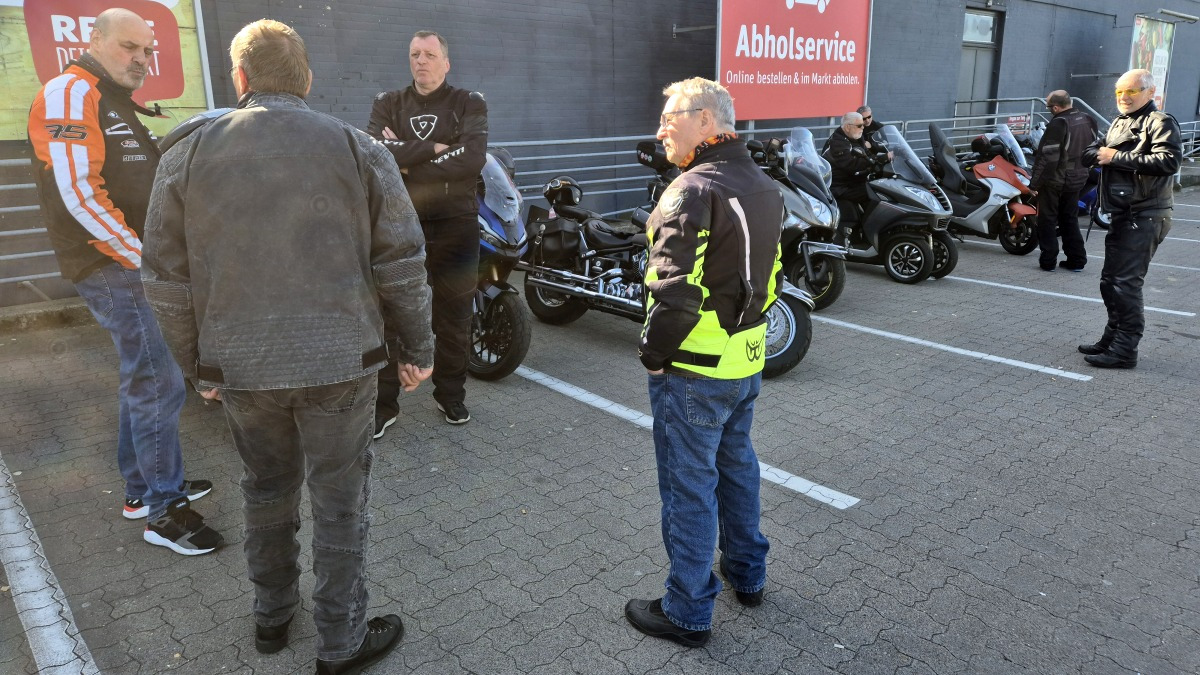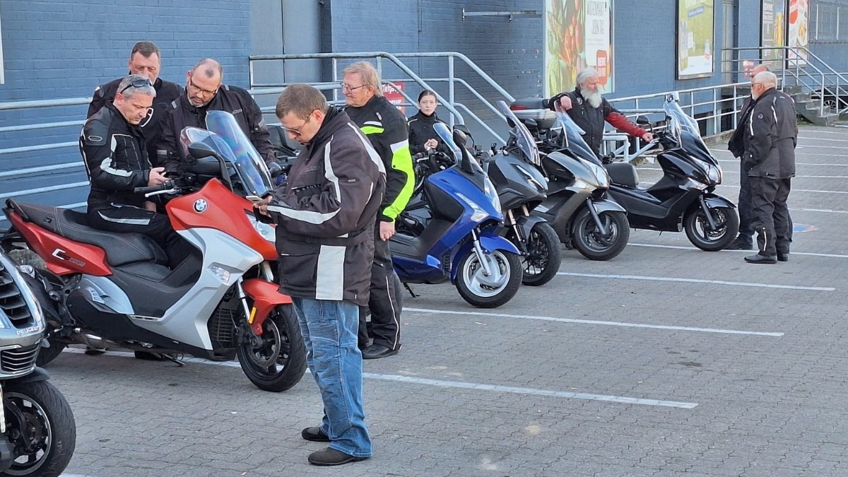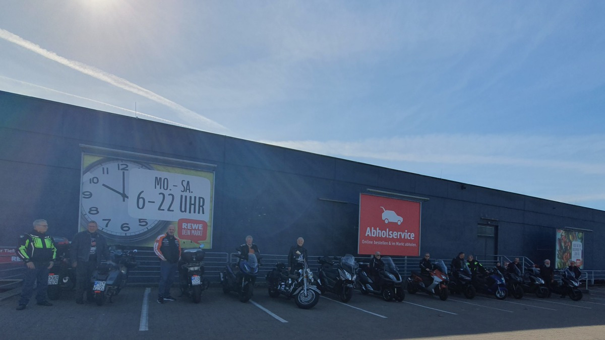 Nach und nach füllte sich der Parkplatz mit Rollern. Dirk war angemeldet aber zur vereinbarten Zeit noch nicht am Treffpunkt. Er konnte aber telefonisch erreicht werden und meldete das er in 5 Minuten eintrifft. Ein Vorteil wenn man sich angemeldet hat.